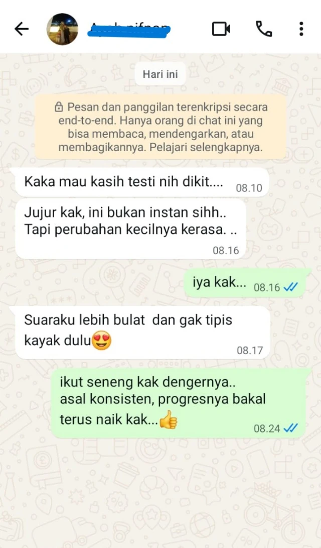 Hasil tiap orang bisa berbeda tergantung konsistensi latihan dan kondisi suara awal.